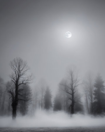 AI Generated. Mysterious Forest with Fog and Moonlight