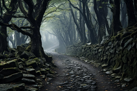 dark and eerie path digital art illustration, Generative AI