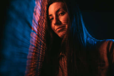 Beautiful woman portrait in neaon lights