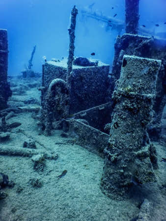 Sunken damaged ship at the bottom of the sea
