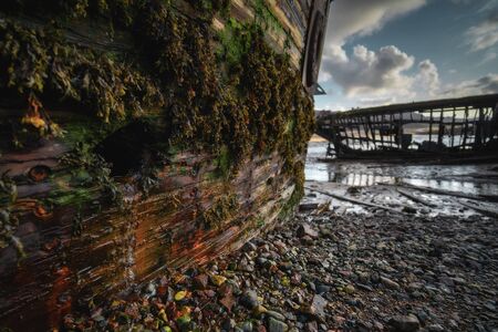 A wreckage of an abandoned ship anchored in Bowling. Scotland