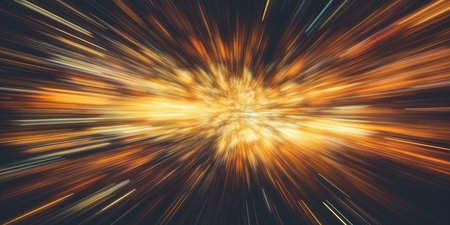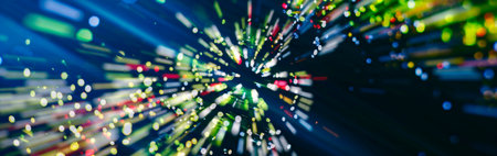 An explosion of vibrant colors and dynamic light creates an immersive cosmic effect, evoking a sense of movement and energy in an abstract space background.