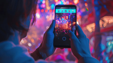 Reflection of light effects on mobile phone at a concert (Gadgets, new device, updates - concept)