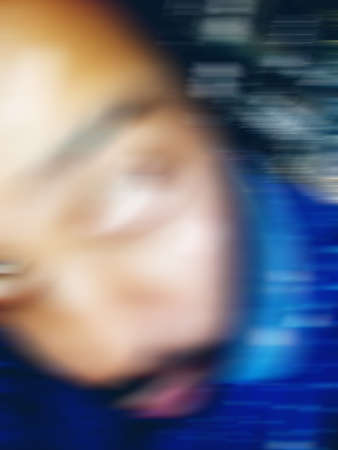 An Indian or asian guy showing his funny facial expression to the camera. Blurred or defocused image.