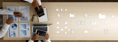 Businessman manage files documentation working modern computer Document Management System transfer file