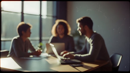 Group of business people working together in office. Blurred background.