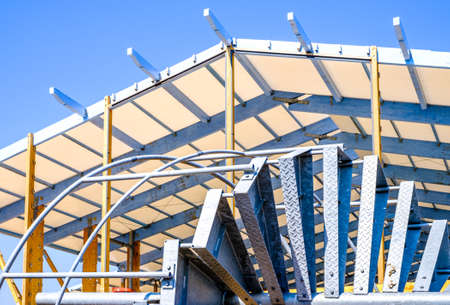 Large metal construction.Engineering structures for metal structures of the stadium stands, construction metal structures connected to each other