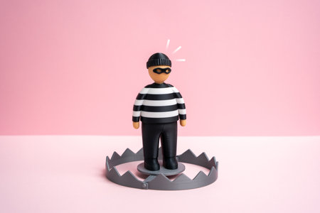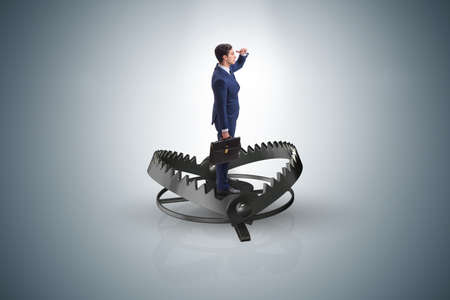The criminal stands in a trap. The crook realized he was caught. Concept of law enforcement efficiency and risk of punishment. Crime prevention, security systems and public safety discussions.