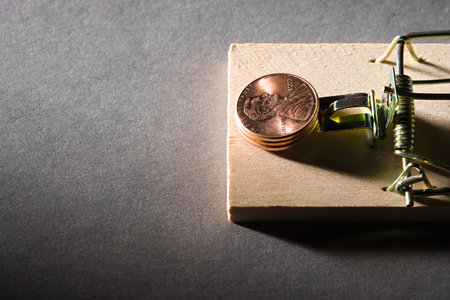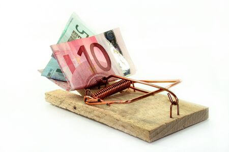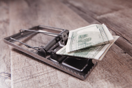 One hundred dollar bill in mousetrap illustrating the danger of easy money.