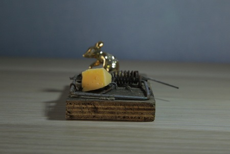 A mousetrap with a piece of cheese in the form of bait. Free cheese as a catch, followed by a hidden trap and payback.
