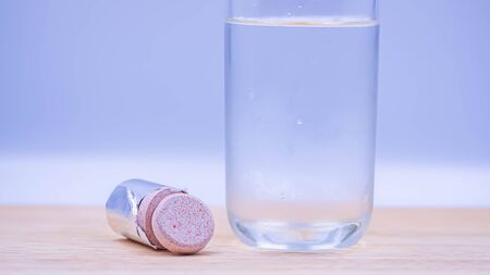 effervescent the tablet is thrown into a transparent glass beaker with water.
