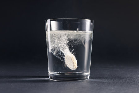 Effervescent tablet dissolving in a glass of water