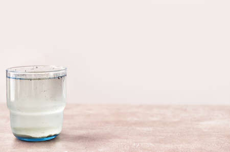 Glass of dirty water on table