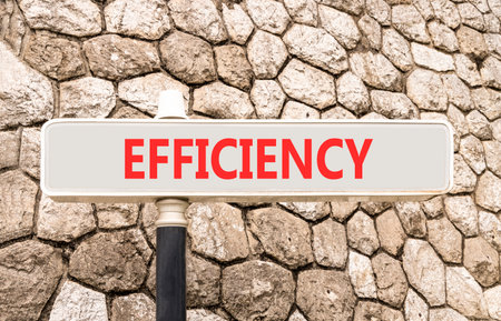 Efficiency symbol. Concept word Efficiency on beautiful gray road sign. Beautiful stone wall background. Business efficiency concept. Copy space.
