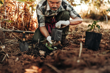 Cultivating the Earth A Close Up View of Planting and Nurturing New Growth in a Lush Natural Environment