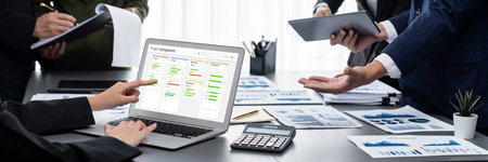 Business People Analyzing PROJECT MANAGEMENT updating work hard Data Analytics Statistics Information Business Technology