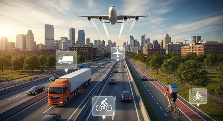 Concept of online transportation and logistics. Mixed media. Mixed media