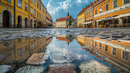 Cobbled Street Reflection in Old Town