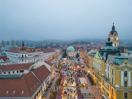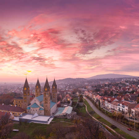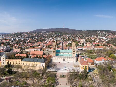 Aerial view of Cathedral of Pecs, Hungary