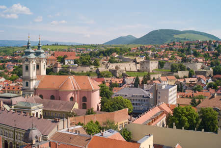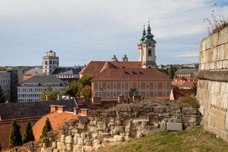 Cityscape of the Old Town of Eger, Hungary, Church of Saint Anthony of Padua and Fortress of Eger