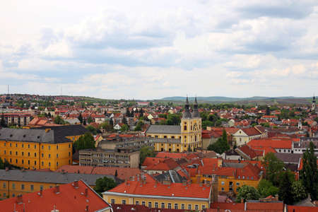 Panoramic view of Eger, Hungary. Red roofs of the old town.