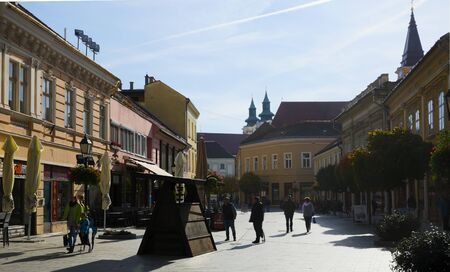KAPOSVAR, HUNGARY - NOVEMBER, 1, 2017: City landscape with old small cozy buildings in the center of Kaposvar, Hungary