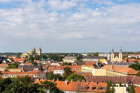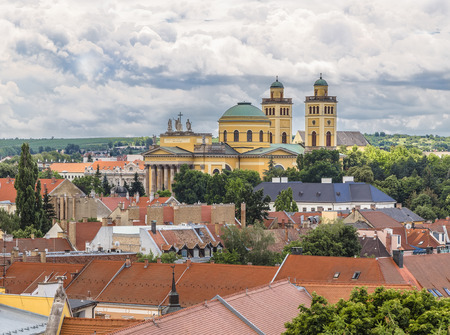 View from the ramparts of the historic town center of Eger - Minorite Church on the Square Dobo Istvan, Eger Basilica. Hungary