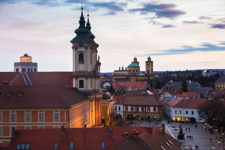 Beautiful view of the Minorit church, Eger, Hungary, at sunset