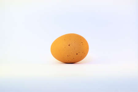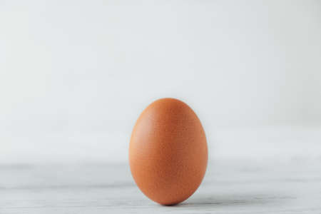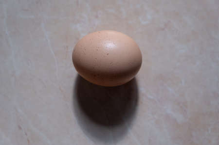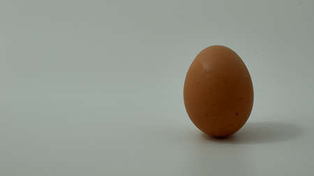 Stock image of 1 chicken egg laid on a white background. There was a slight shadow caused by artificial light shining down from the upper left corner. light from the right window It is a stock image that users can instantly put text on the white side of the image.