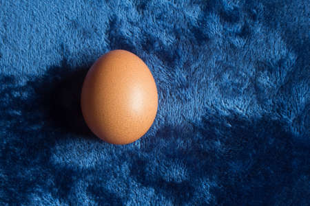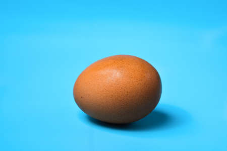 A brown egg isolated on a gradient blue texture background with room to enter a text. Graphic resources and food.