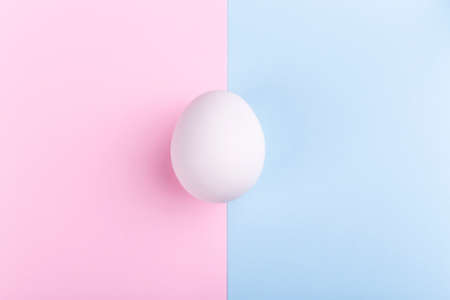 Egg in egg cup on a pink background. minimalist composition. Easter concept.
