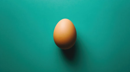 A beautifully captured brown egg resting on a vibrant teal background. The soft shadows emphasize its shape, adding a modern touch to the composition. Perfect for food-related projects.