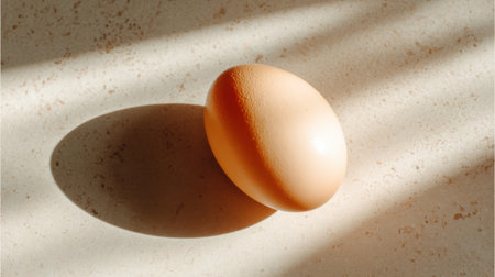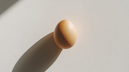 A serene and minimalist portrayal of a brown egg resting on a pale surface, illuminated by soft light, creating gentle shadows that enhance the egg's natural beauty.