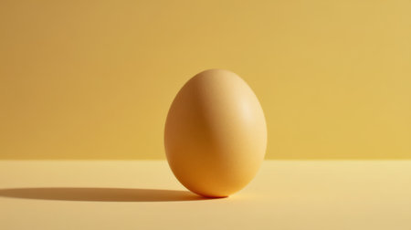 A beautifully minimalist image showcasing a smooth beige egg casting a gentle shadow on a soft yellow background. Ideal for food themes.