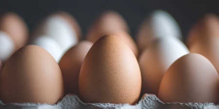 Easter concept. Brown-shelled farm eggs row. Organic natural eco food. High quality photo
