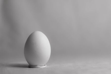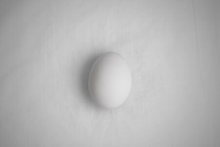 Egg on the table. Minimal white easter egg on gray background, flat lay