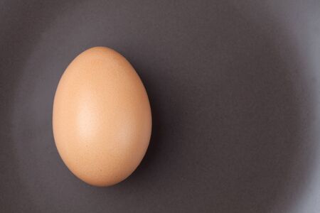 white chicken egg on textile rustic gray background. Design for poultry industry, production of eco bio natural food. Free space for text. minimalistic top view. design for banners, cards.