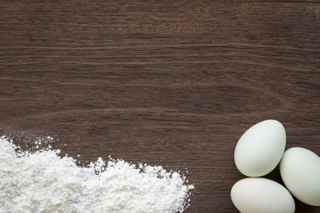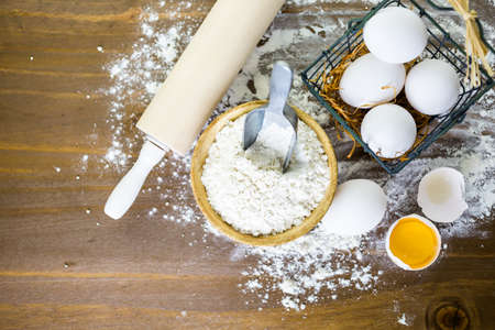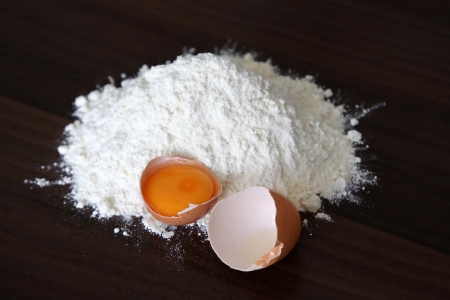 Egg and flour, baking ingredients