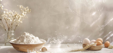 flour and eggs on the table, realistic illustration