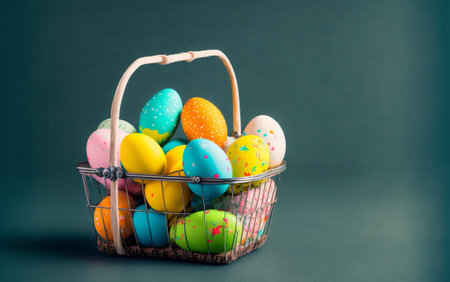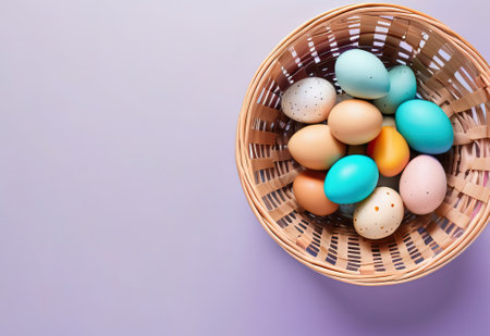 Colorful Easter eggs resting in a wicker basket, celebrating the spring season and the tradition of Easter