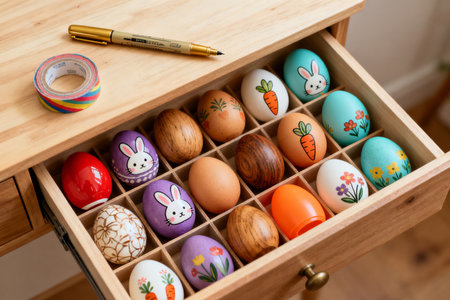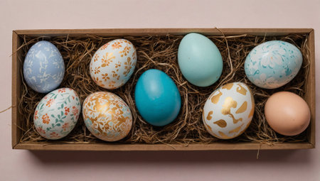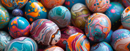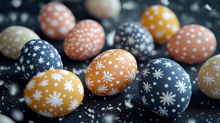 Decorated Easter eggs showcase vibrant patterns for spring holiday celebration