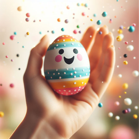 AI Generated. A pastel-colored background featuring a retro-styled Easter egg on the right side