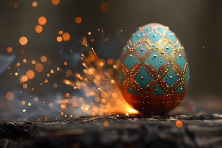 Sparkling Decorated Egg Amidst Fiery Sparks in Moody Lighting