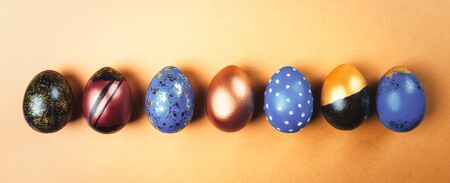 Colorful Easter eggs background. Top view of colorful Easter eggs.