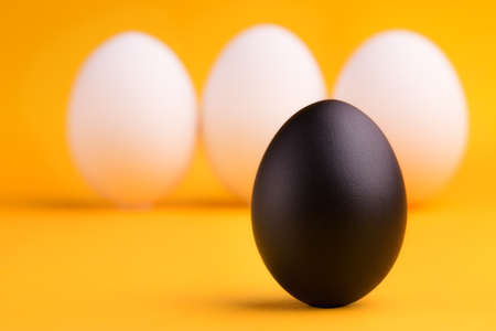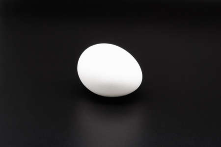 An egg is standing on a black table. Easter egg background. Very beautiful egg. the best on the pillow