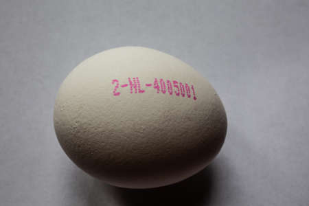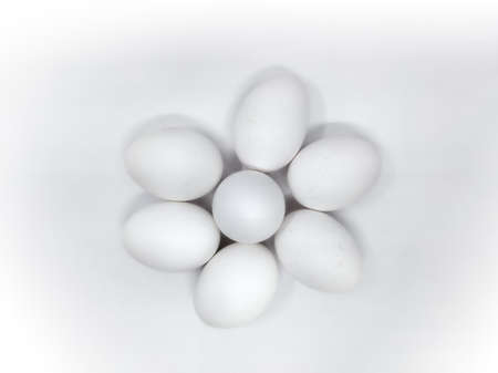 Flat lay closeup view raw and soft boiled eggs on plastic box