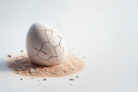 Cracked eggshell with close-up details and a natural texture. Concept of fragility and beginnings.