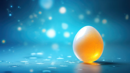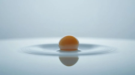 A beautiful close-up of a fresh egg yolk set on a smooth surface, surrounded by gentle ripples and soft light reflections. Perfect for food-related projects.