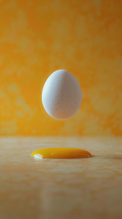 Floating Egg with Broken Yolk on Vibrant Yellow Background