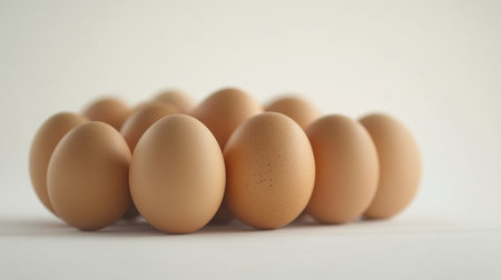 A group of chicken eggs placed on a pure white background, highlighting their natural texture and representing egg production.